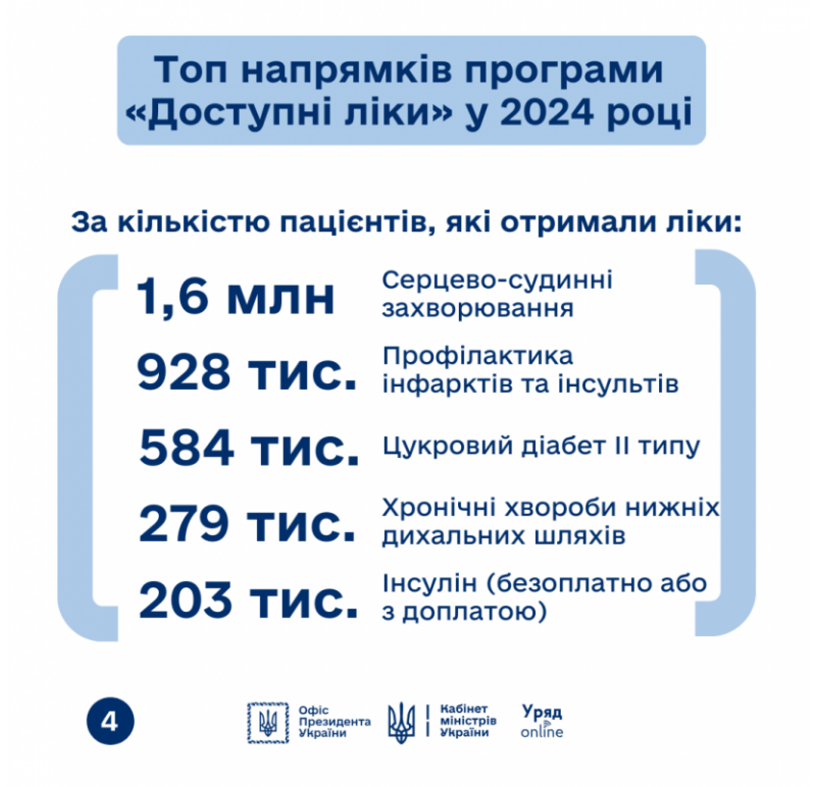За 5 років існування програми 5 мільйонів пацієнтів отримали необхідні медикаменти, а лікарі виписали 76 мільйонів рецептів. У 2024 році на програму виділили рекордні 5,3 мільярда гривень. Уже оформлено 14,4 мільйона е-рецептів, і 2,37 мільйона українців скористалися цією можливістю.