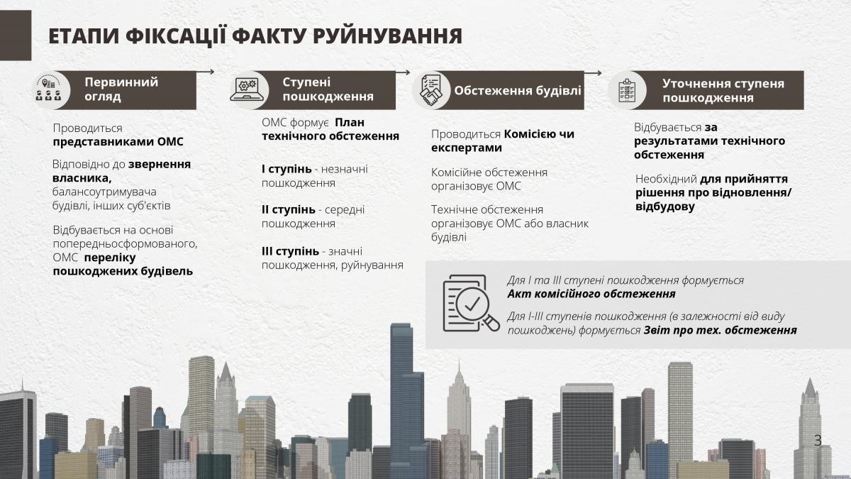 - фіксувати пошкодження, зумовлені збройною агресією російської федерації, будівель та споруд не лише приватної і комунальної форм власності, а й державної;