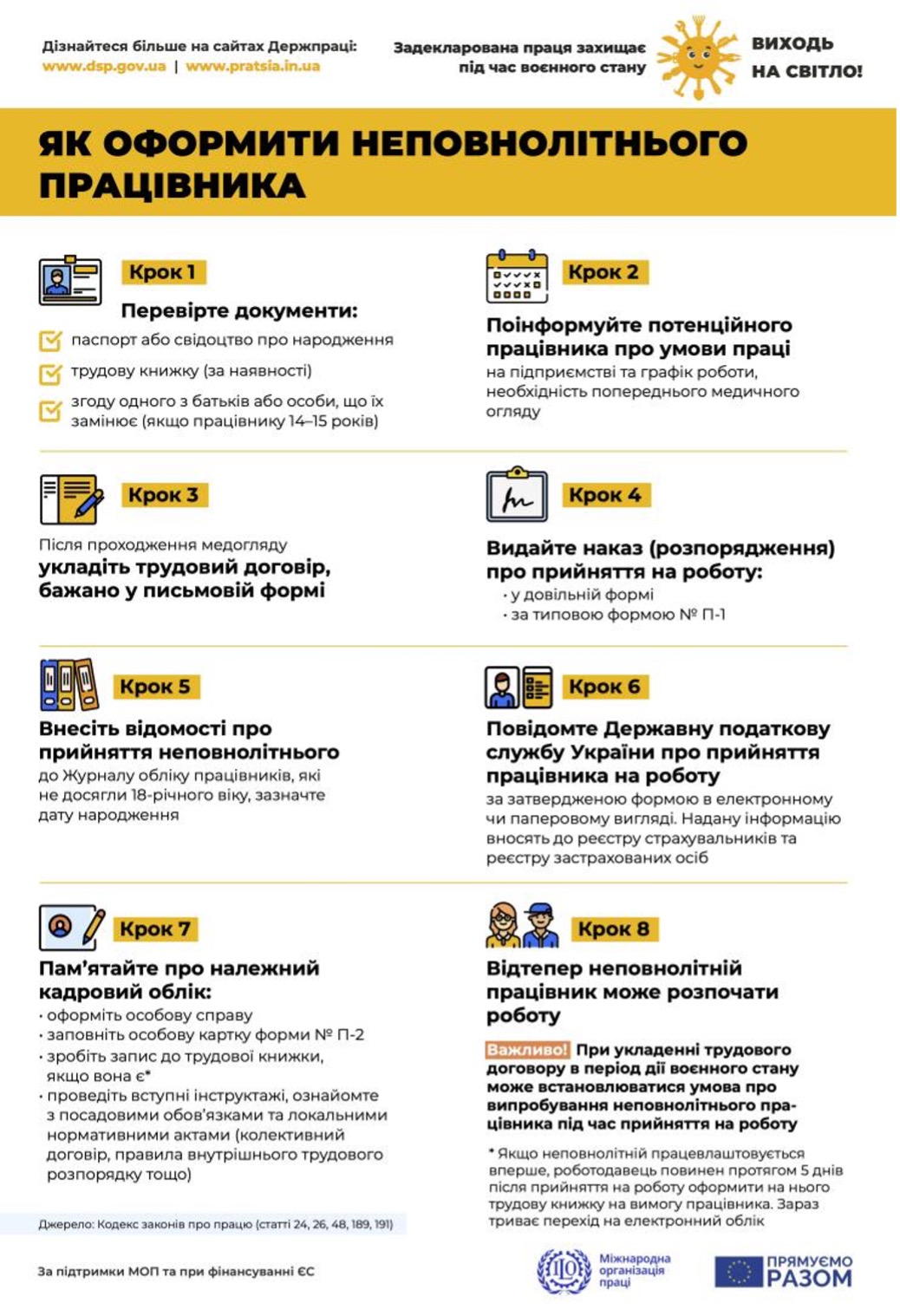 Детальніше про умови оформлення неповнолітнього працівника – в інфографіці.