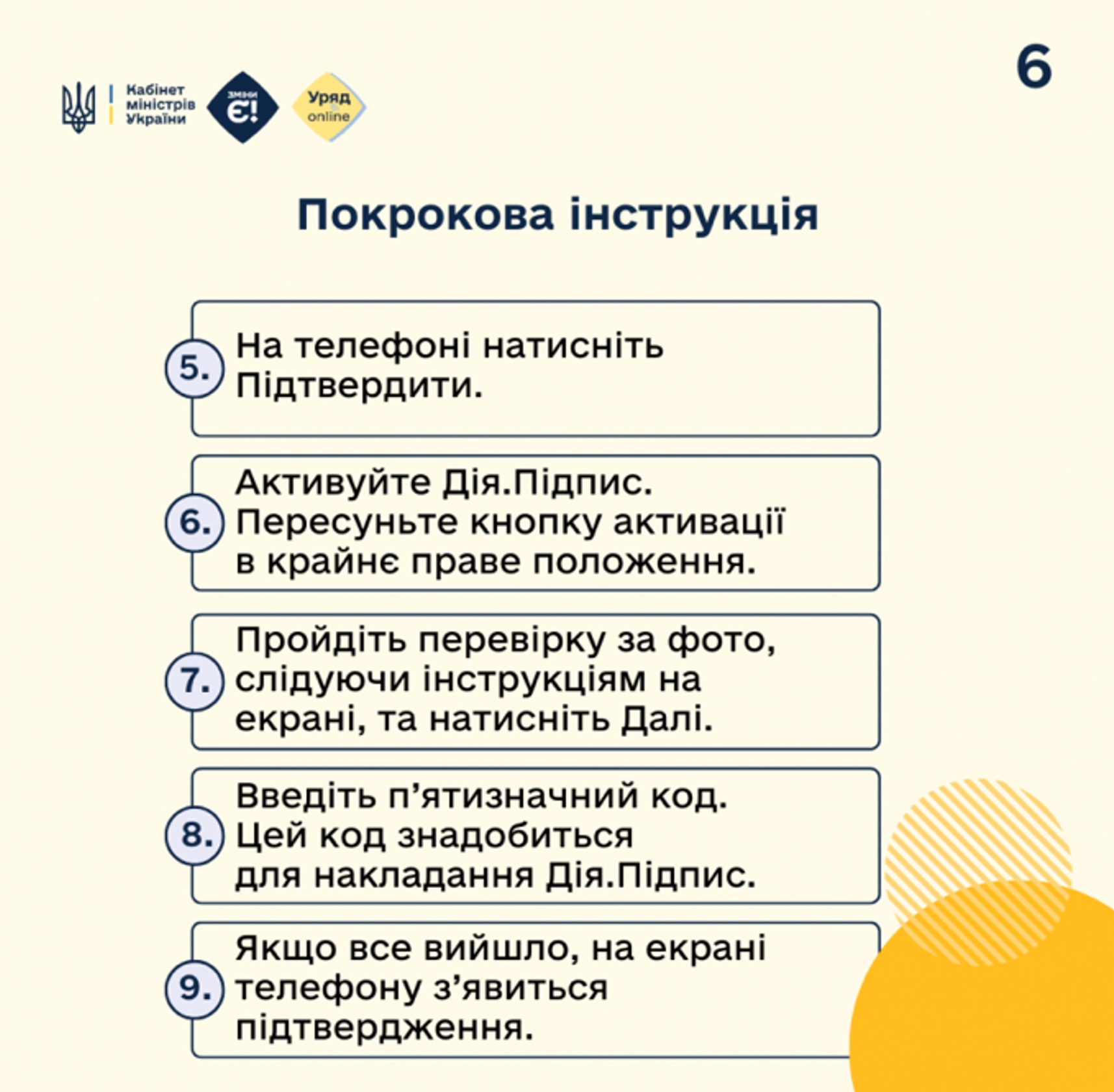Спершу переконайтеся, що мобільний застосунок «Дія» встановлений на вашому телефоні. А також активуйте у застосунку функцію «Дія.Підпис».