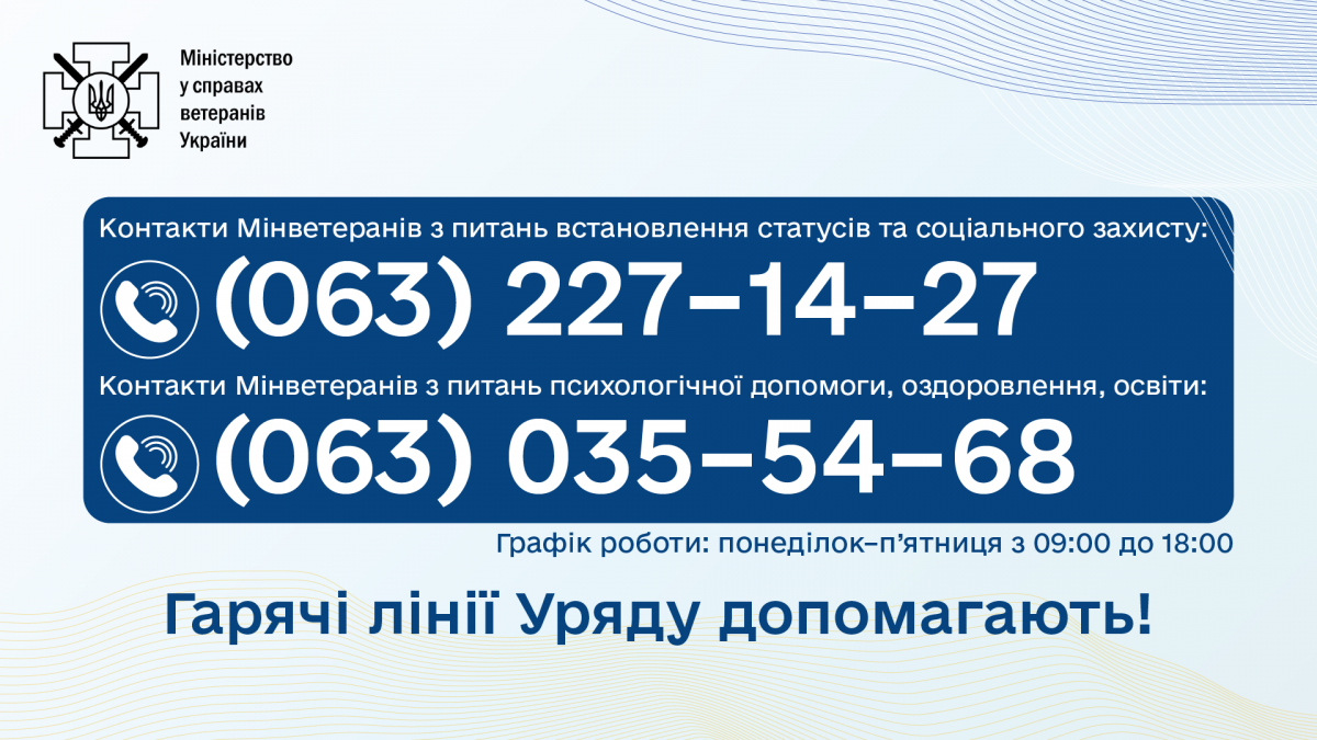 Консультації з цих та інших питань – за контактними номерами Міністерства у справах ветеранів України: