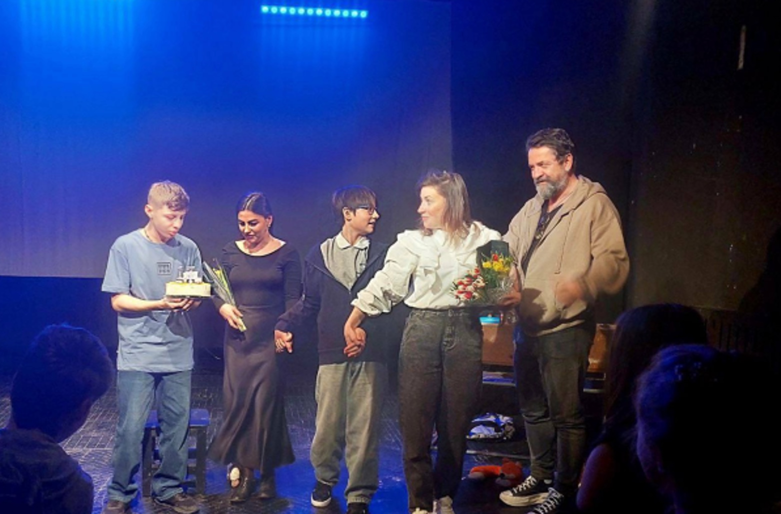 Головну роль у виставі виконав юний актор Маріупольського театру Матвій Китриш. Роль його матері зіграла акторка Олена Біла.