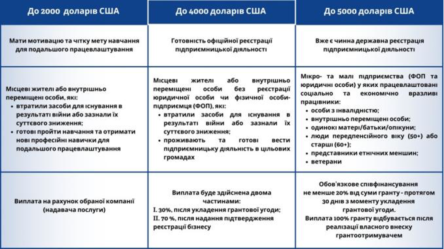 Фінансування можна буде витратити на відновлення активів, оренду чи ремонт приміщення, закупівлю обладнання, витрати на навчання персоналу, маркетинг та рекламу тощо.