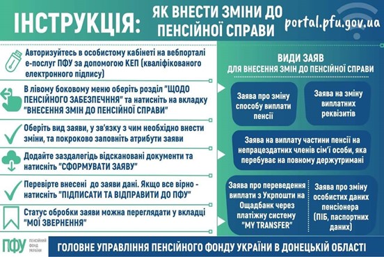 - у розділі «Про пенсійне забезпечення» вибрати опцію «внесення змін до пенсійної справи».