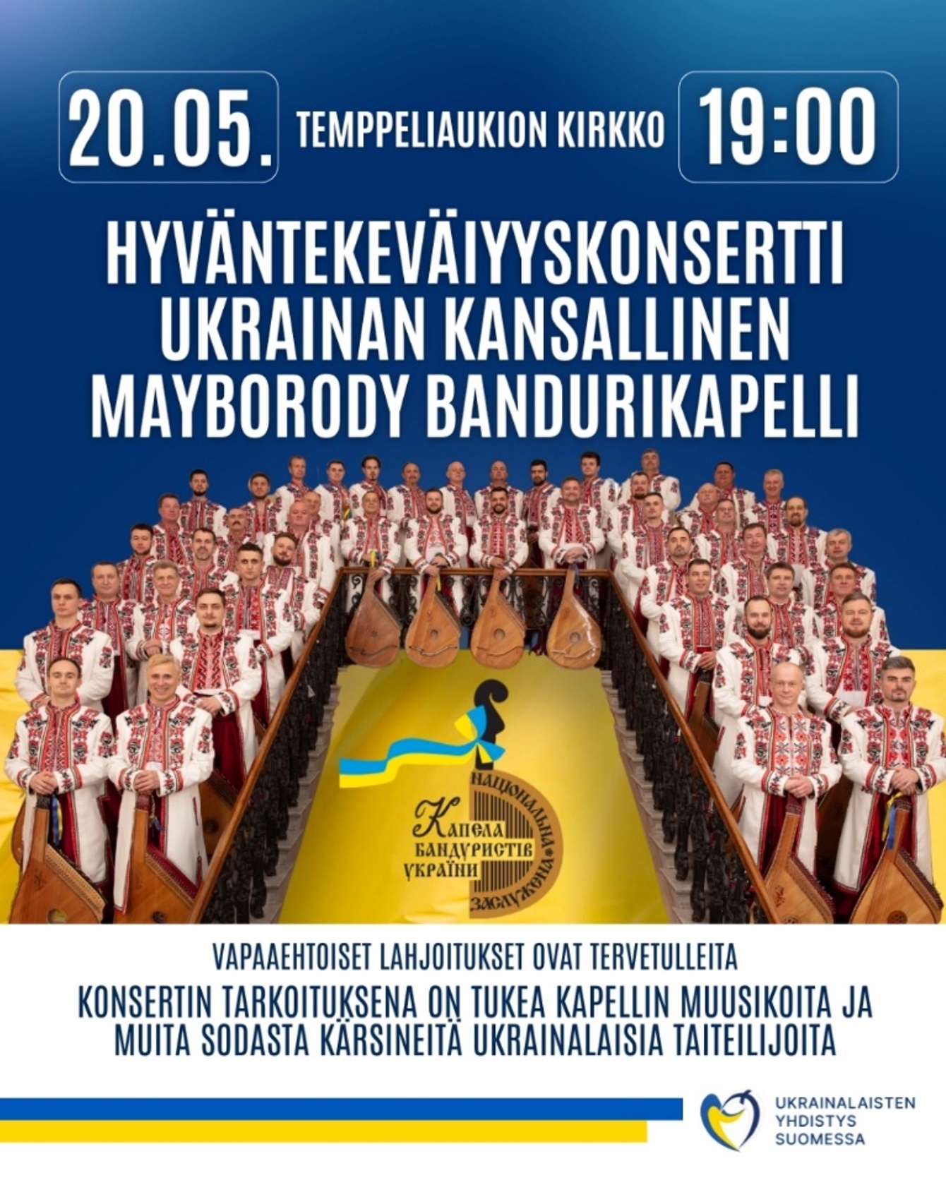 Благодійний концерт легендарного українського колективу, Національної заслуженої капели бандуристів України імені Георгія Майбороди відбудеться 20 травня.