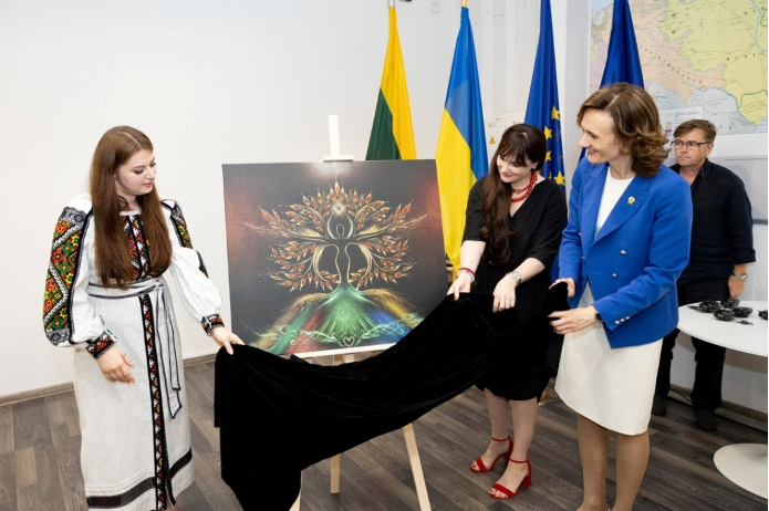 Особливим моментом відкриття стало представлення нової картини Подолянчук — «Дерево Душі: Спільне Коріння Литви та України». Роботу авторка подарувала Сеймасу як знак подяки за дружбу й підтримку.