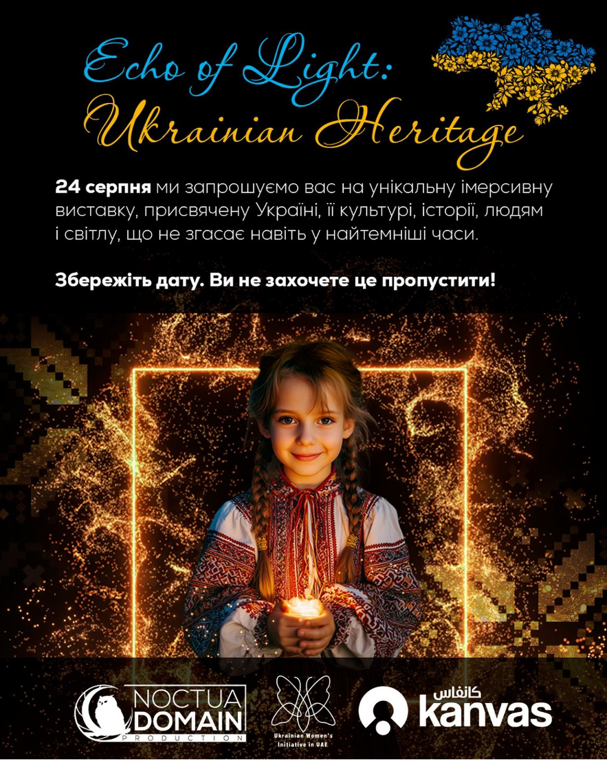 24 серпня у Дубаї проходитиме імерсивна виставка «Світло крізь віки: українська спадщина». Про це повідомила Українська жіноча ініціатива в ОАЕ, передає ІА «Ре-Інформ».