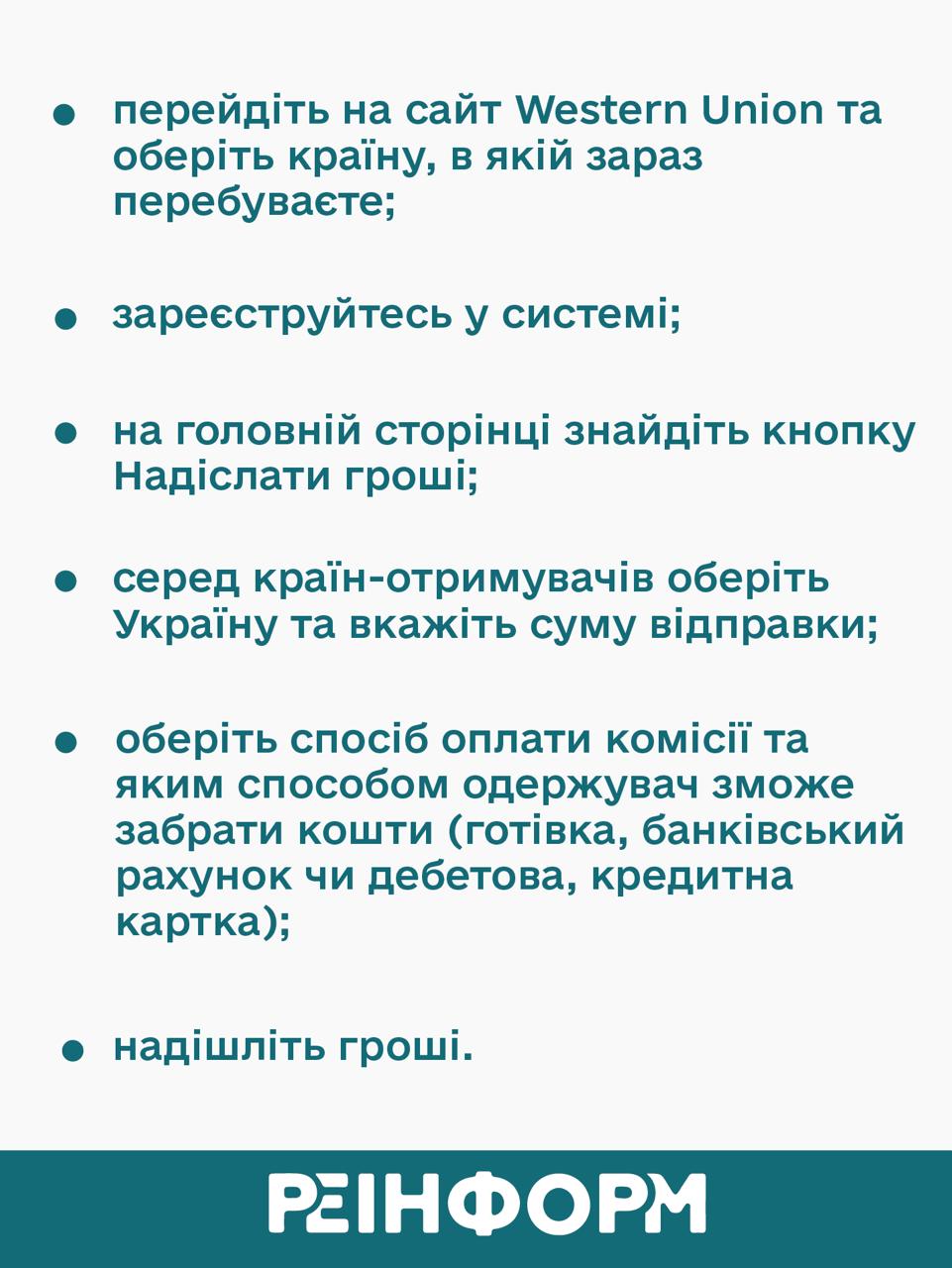 Якщо ви не маєте відкритого рахунку в банку за кордоном можна скористатися онлайн-платформо Western Union: