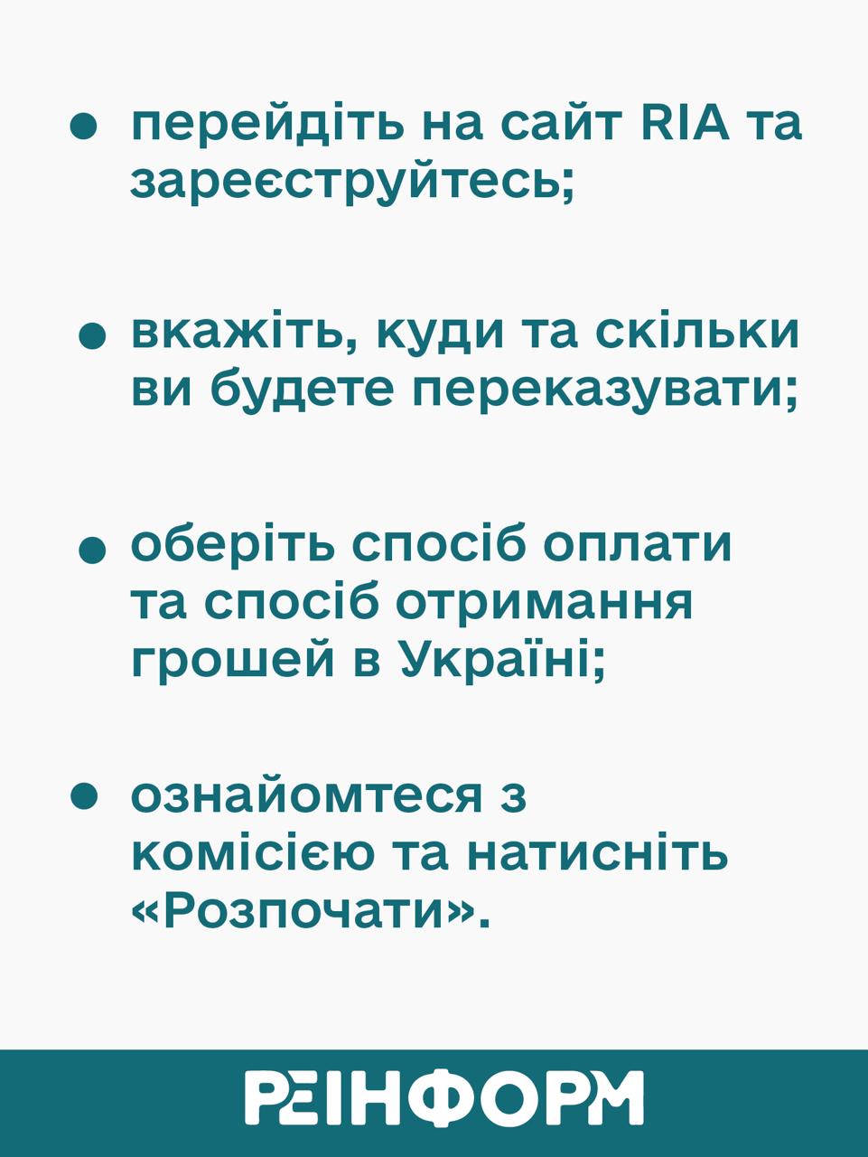 Більш детально про переказ коштів в Україні через RIA ви можете ознайомитися за посиланням.