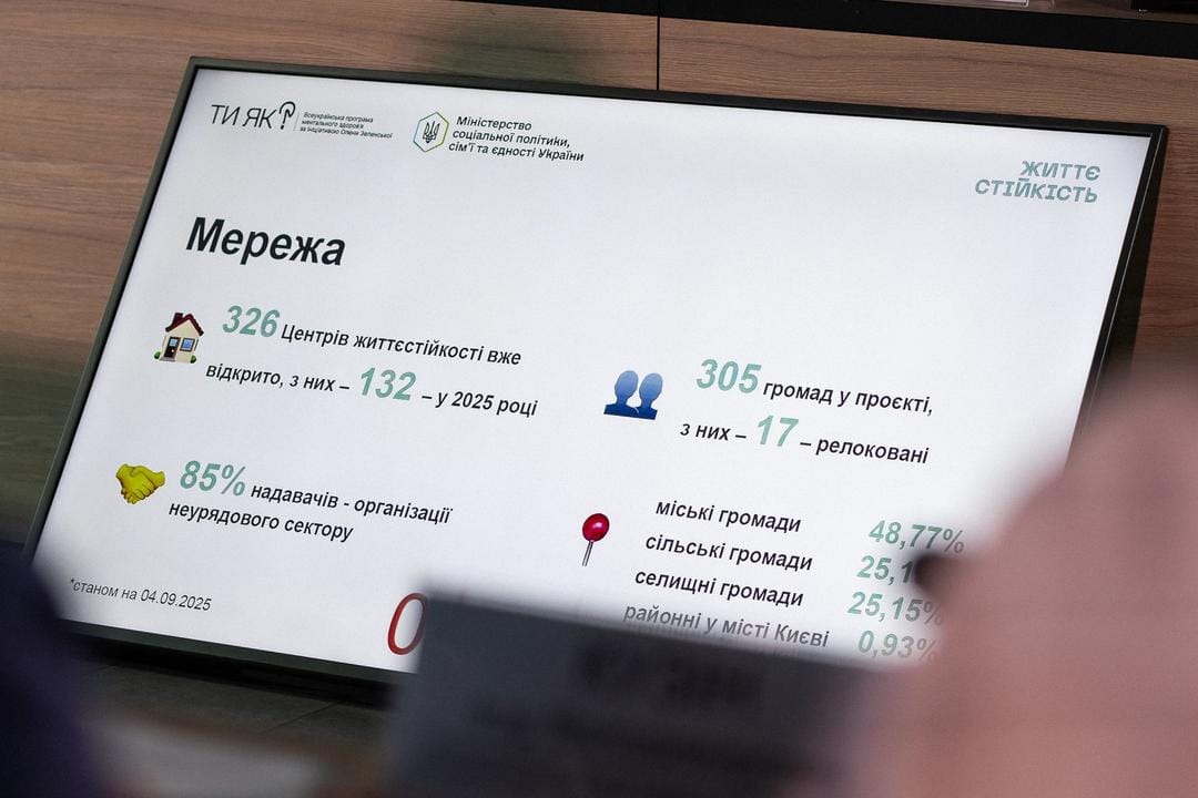 На сьогодні в Україні працюють 326 Центрів життєстійкості. За час діяльності пілотного проєкту тут відбулося понад 2,5 мільйона контактів із людьми та понад 1,5 мільйона заходів. У мережі працюють більше ніж 1,5 тисячі фахівців, які пройшли навчання за сертифікованими програмами.