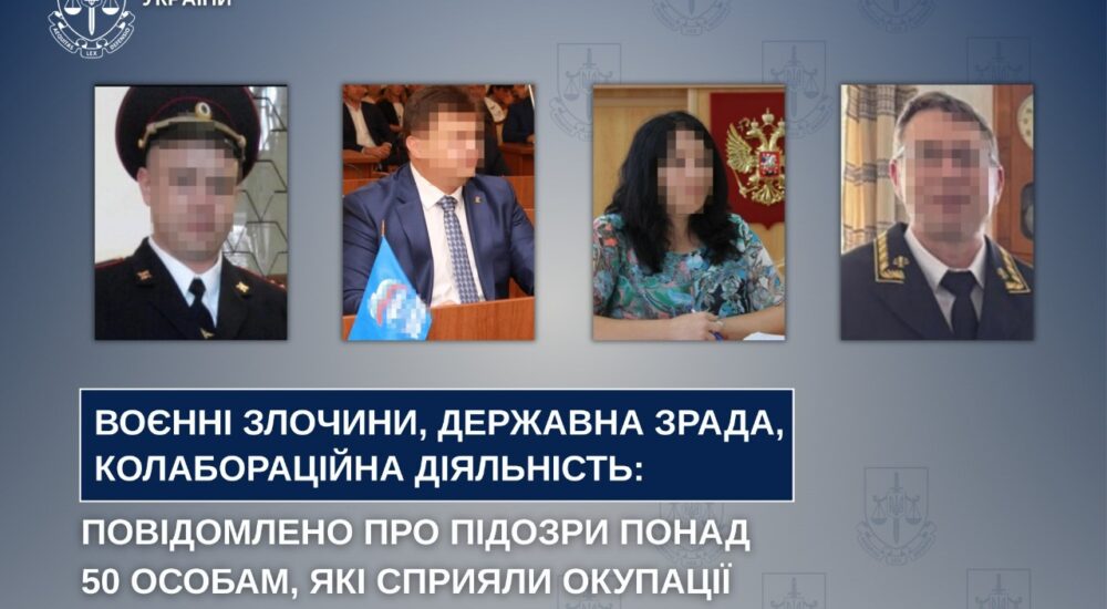 Прокуратура Автономної Республіки Крим та міста Севастополя спільно зі слідчими ГУ СБУ, ГУ НП України в АР Крим і ТУ ДБР у м. Мелітополі повідомила про підозри понад 50 особам, які добровільно перейшли на бік окупантів та сприяли незаконній владі рф у Криму. Про це стало відомо із публікації у Facebook прокуратури Автономної Республіки Крим та міста Севастополя, передає ІА “Ре-Інформ”.