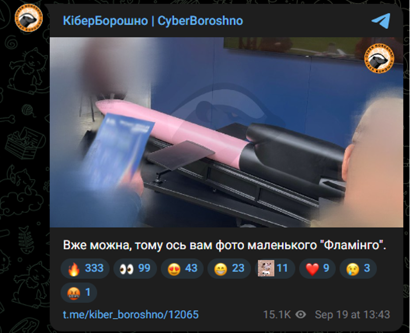 «Вже можна, тому ось вам фото маленького «Фламінго», –підписали допис із фото міні-ракети на сторінці OSINT-проєкту.