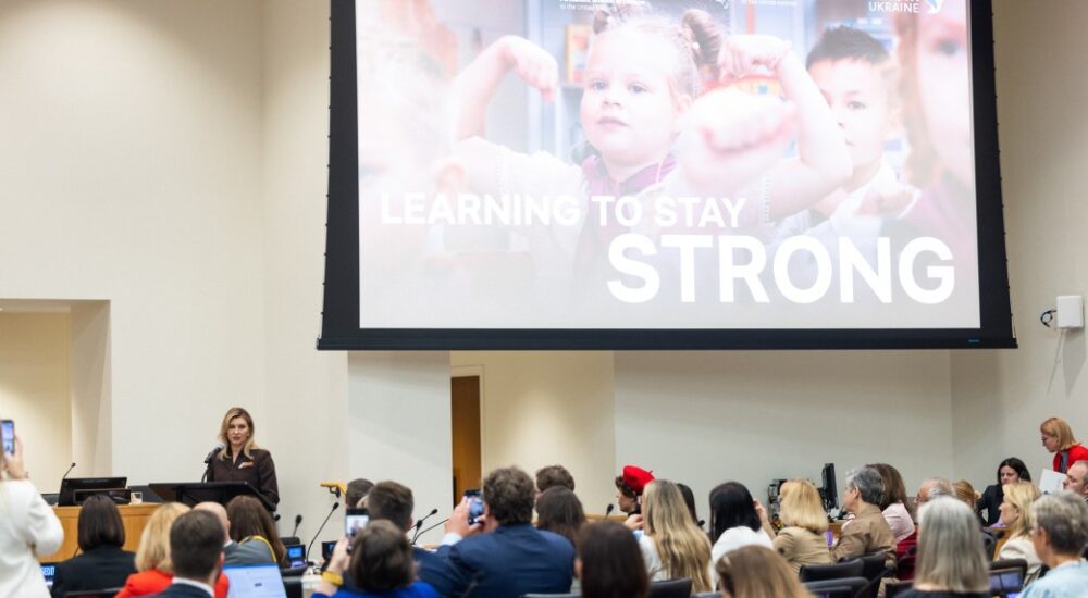В межах Генеральної Асамблеї ООН у Нью-Йорку перша леді України Олена Зеленська взяла участь у спеціальному освітньому заході, присвяченому шкільній освіті: «Вчитися залишатися сильними: освіта як основа стійкості України». Про це повідомляє Офіс Президента, передає ІА «Ре-Інформ».