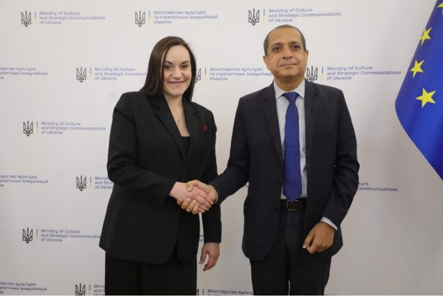 Представники Міністерства культури та стратегічних комунікацій України зустрілися з Надзвичайним і Повноважним Послом Індії в Україні Раві Шанкаром та обговорили ключові напрями українсько-індійської співпраці у сфері культури, зокрема участь Індії у відновленні української культурної спадщини та реалізацію спільних ініціатив і проєктів. Про це повідомляє ІА «Ре-Інформ» з посиланням на МКСК.