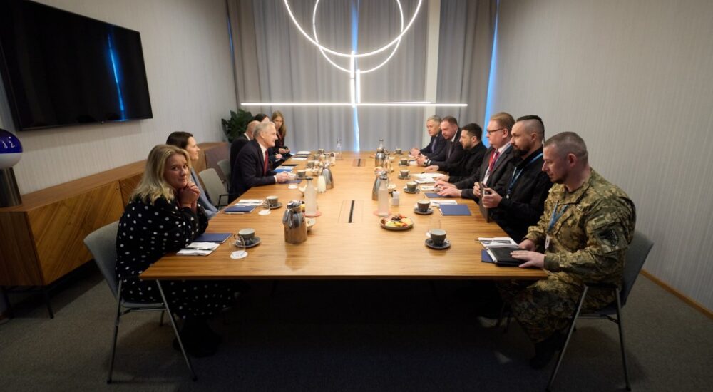 «Важливий фокус зустрічі – протидія російським загрозам. Володимир Зеленський і Йонас Гар Стере обмінялися думками щодо порушення повітряного простору, зокрема дронами, у Норвегії, Польщі, Данії, Румунії та Естонії», — йдеться в повідомленні.