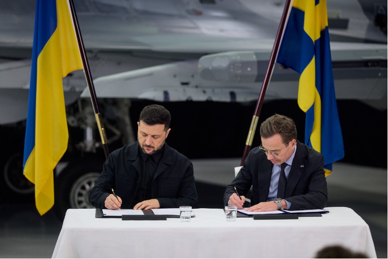 Україна та Швеція домовилися про стратегічне посилення українських Повітряних сил. Президент України Володимир Зеленський і Прем’єр-міністр Швеції Ульф Крістерссон підписали лист про наміри щодо співпраці у розвитку бойової авіації. Про це ІА «Ре-Інформ» повідомляє із посиланням на Офіс Президента України.