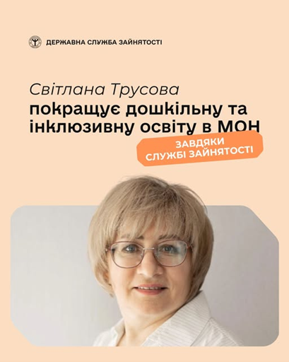 Світлана Трусова, яка присвятила 39 років роботі в освіті, з яких 13 років обіймала керівні посади, звернулася до Державної служби зайнятості, щоб оновити свої знання та навички. Завдяки цьому вона отримала можливість покращувати дошкільну та інклюзивну освіту на національному рівні. Про це повідомляє ІА «Ре-Інформ» з посиланням на ДСЗ України.