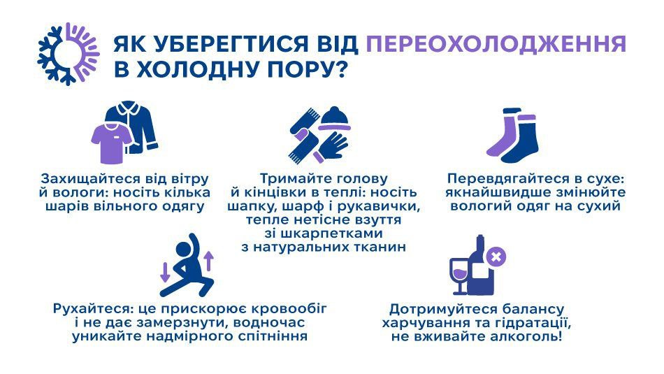 За словами експертів, найбільший ризик переохолодження загрожує дітям, людям похилого віку та бездомним.