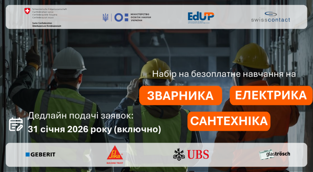 У межах проєкту EdUP спільно з Київським професійним коледжем цивільного будівництва оголошується набір на безплатне професійне навчання за двома напрямами: сантехнік і зварник.