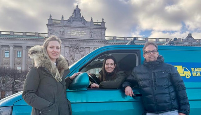 Членкиня Риксдагу Анн-Софі Альм особисто подолала 2 тисячі кілометрів зі Стокгольма до Києва, щоб передати автомобіль від шведської організації Blågula Bilen 156-й окремій механізованій бригаді в Україні.