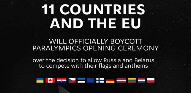 Уже 11 країн та ЄС повідомили про рішення бойкотувати відкриття Паралімпійських ігор, що незабаром стартують у Італії, через присутність росіян і білорусів, яких Міжнародний паралімпійський комітет допустив до змагань з їхніми прапорами та гімнами.