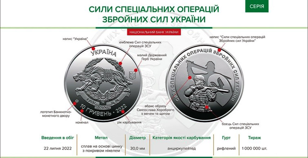 Монету номіналом у 10 гривень введено в обіг з 22 липня. Її гаслом обрано відомий вислів київського князя Святослава Хороброго: «Іду на ви!». Нині його використовують і українські бійці ССО.